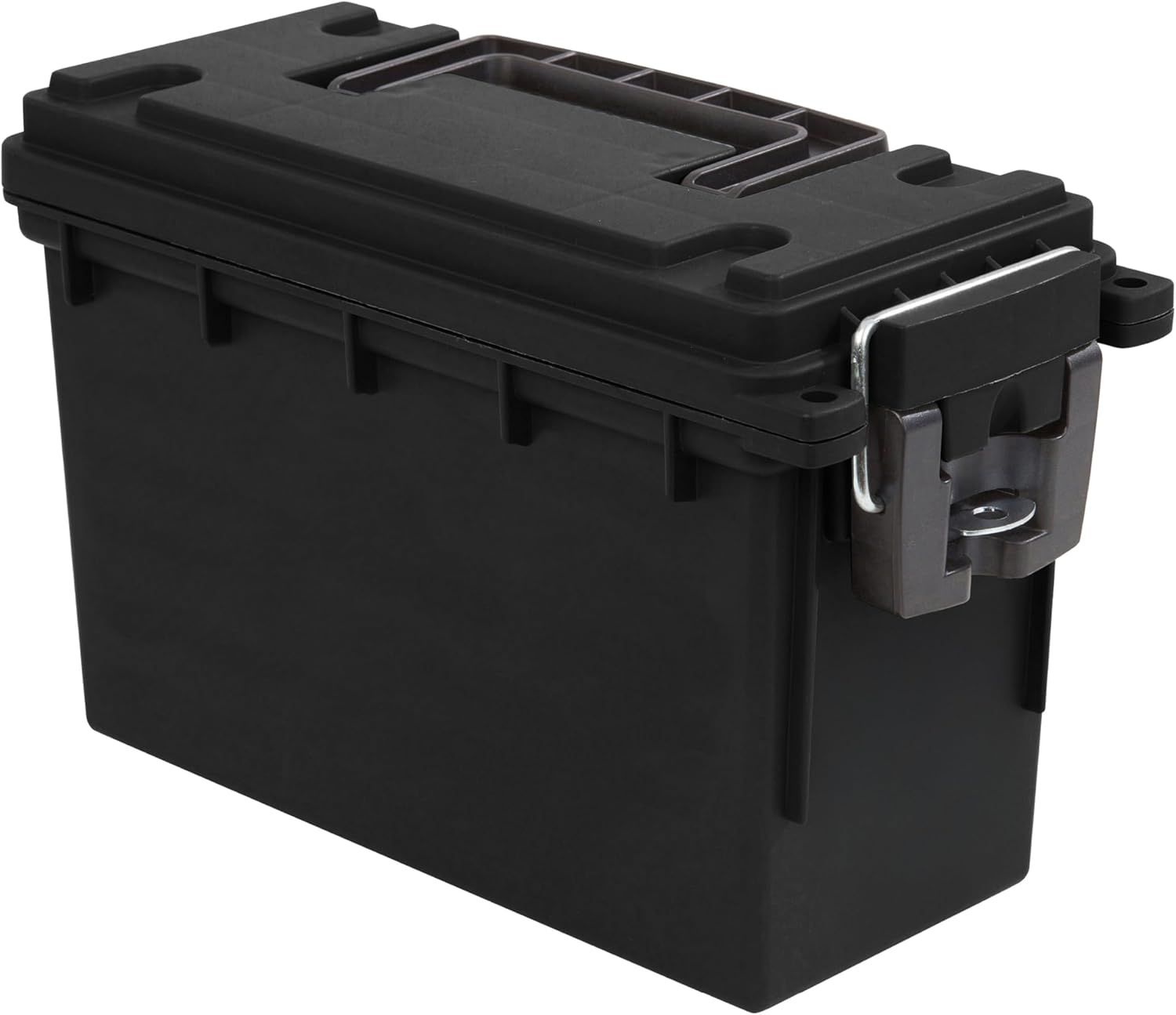 12629 Ammo Storage Box, Stackable .30 Cal Field Boxes, Water and Dust Resistant, Lockable Storage Box with Handle, Secures Hunting Gear, Supplies, and Bullets, Made in USA, Black, 1-Pack