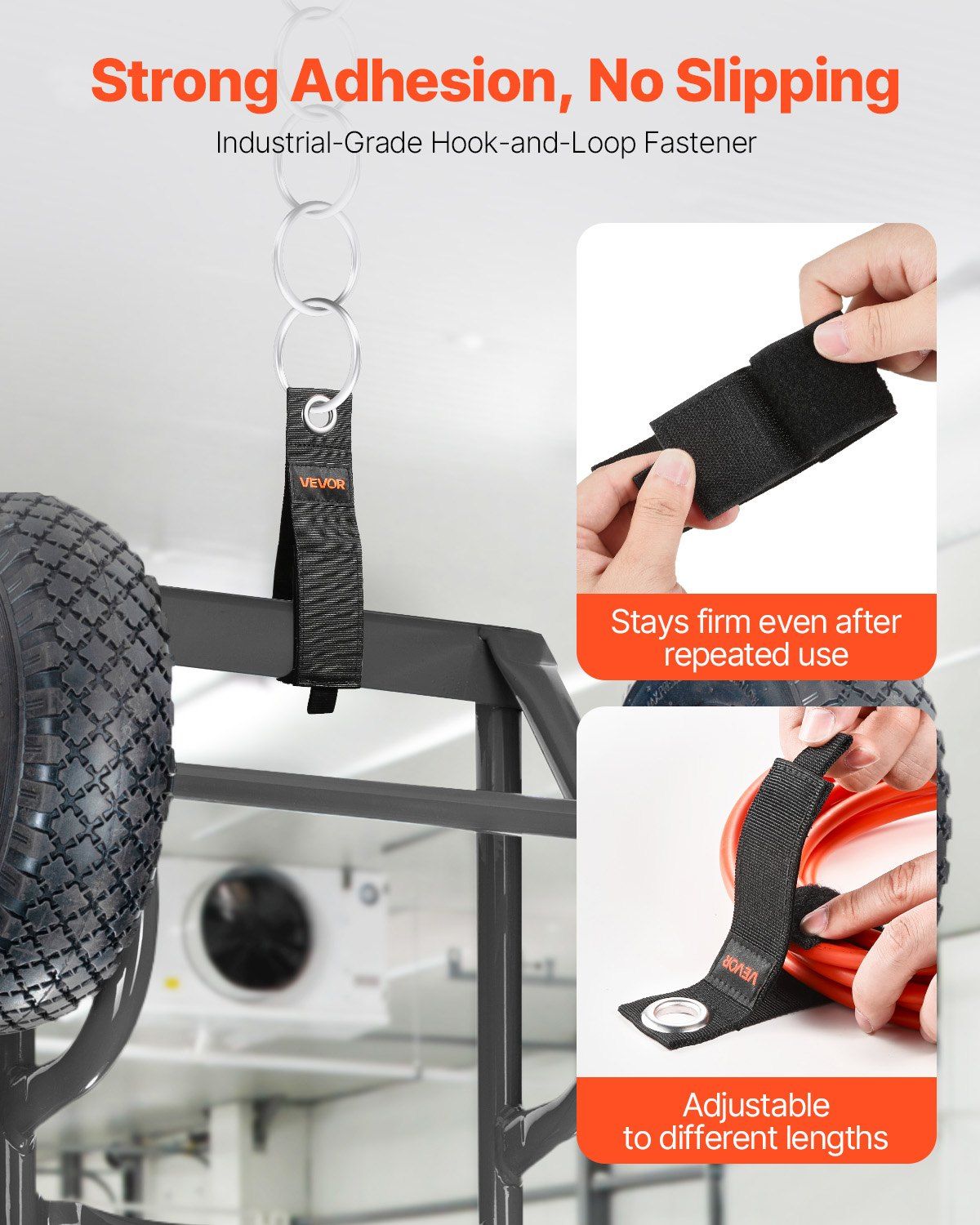 4.Secure & Adjustable: Industrial-strength hook-and-loop fasteners provide a strong grip, even for heavy cables or tools. Adjustable and reusable, they maintain their strength over time