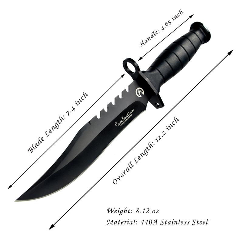 2.BLACK BLADE: Fixed blade EDC hunting tactical survival outdoor knife with sheath is 440A High Carbon Stainless Steel and has drop point blade.