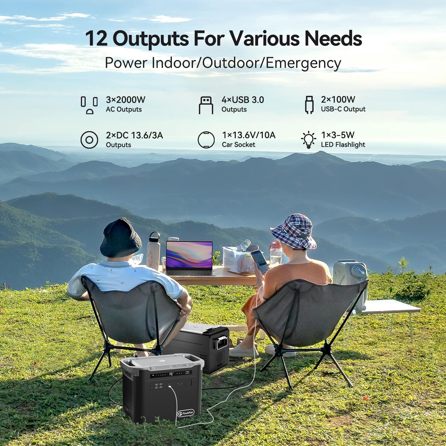 FF Flashfish 1997Wh Portable Power Station , 2000W LFP Solar Generator, Full Charge in 1.5 H, Solar Powered Generator for Home Backup Travel Hunting (