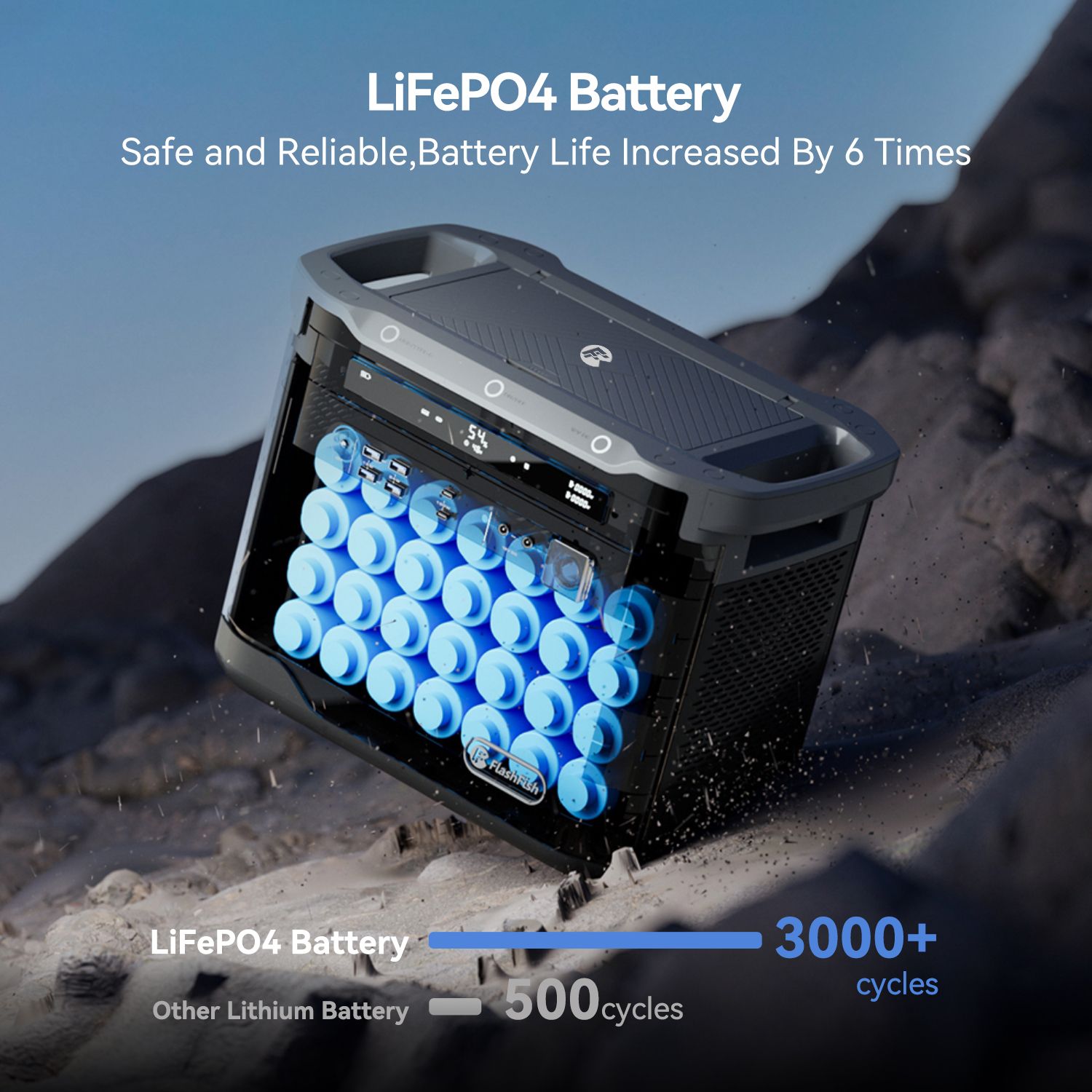 2.10-Year Long-Lasting LFP Battery. LFP battery chemistry provides 3000 cycles till it lowers to 80% capacity. That's 6× more cycles than the industry average and more cost-efficient.